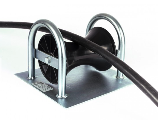 Стабильный ролик заземления изготовлен из рамы из оцинкованной стальной трубы с синтетическим роликом на шарикоподшипниках для кабелей диаметром до 200 мм.
